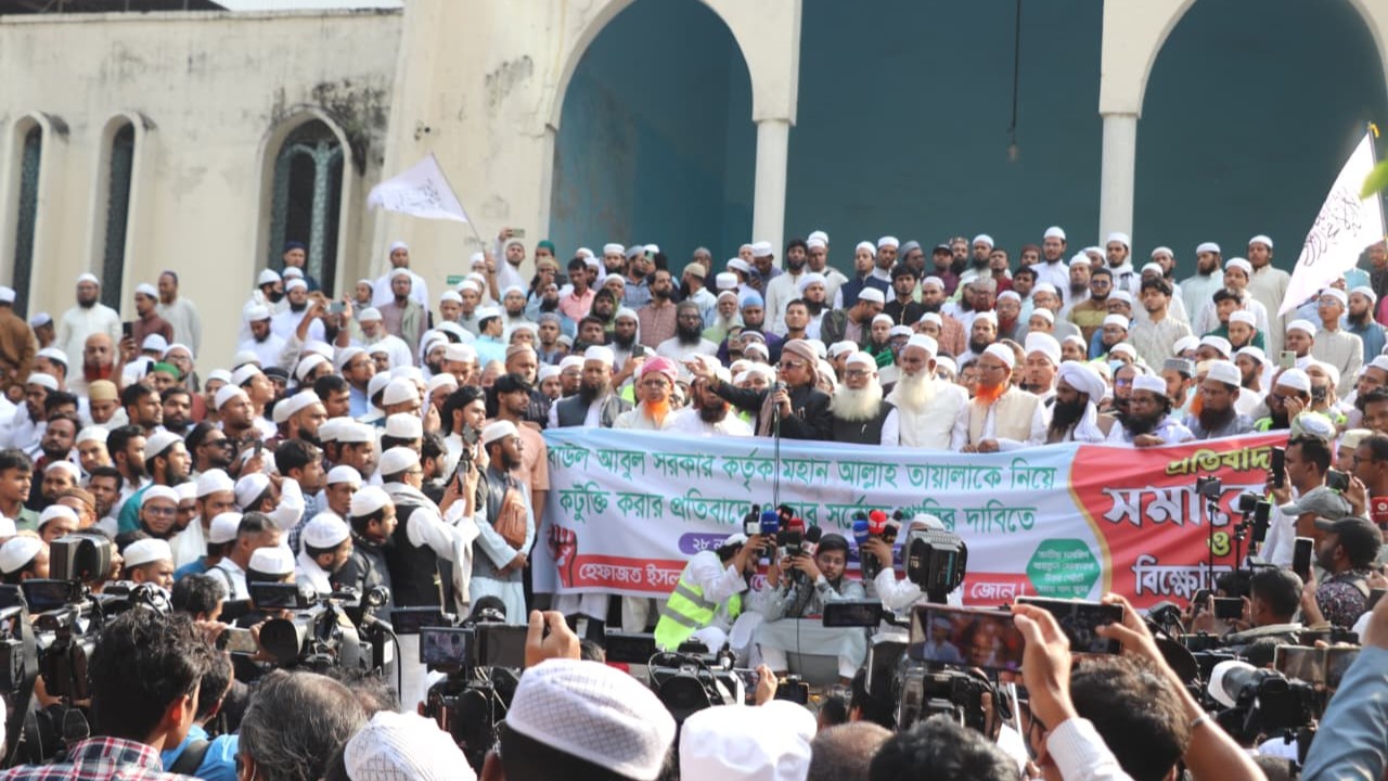বক্তারা সরকারকে হুঁশিয়ারি দিয়ে বলেন, ধর্মদ্রোহীদের রক্ষা করা মানেই ইসলামবিদ্বেষীদের মদদ দেওয়া। মুসলমানরা তা কখনো মেনে নেবে না। ইনশাআল্লাহ, এই জাতি উপযুক্ত জবাব দিতে জানে।