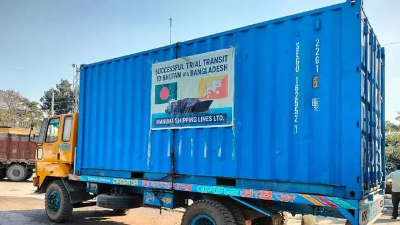 ভারতের ভূখণ্ড ব্যবহারের অনুমতি না পাওয়ায় বাংলাদেশের ওপর দিয়ে ভুটানে পণ্য পরিবহনের (ট্রানশিপমেন্ট) পরীক্ষামূলক কার্যক্রম শুরুতেই হোঁচট খেয়েছে। থাইল্যান্ড থেকে চট্টগ্রাম বন্দর হয়ে আসা ভুটানের প্রথম ট্রানশিপমেন্ট চালানের পণ্যবাহী একটি কনটেইনার লালমনিরহাটের বুড়িমারী স্থলবন্দরে আটকে আছে।