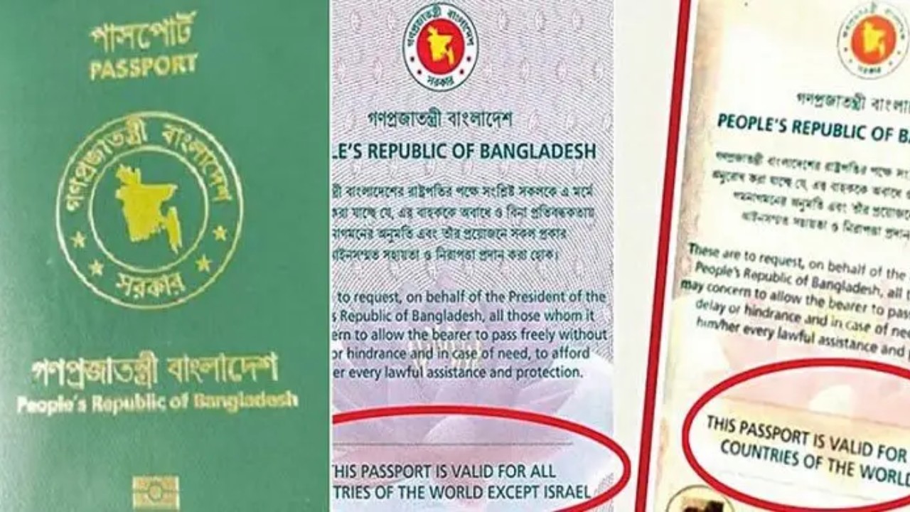 স্বরাষ্ট্র মন্ত্রণালয়ের কর্মকর্তারা জানান, বাংলাদেশের নাগরিকদের সব সময় ইহুদিবাদী ইসরাইল ভ্রমণে নিষেধাজ্ঞা আছে। এছাড়া ভূখণ্ডটির সঙ্গে দ্বিপক্ষীয় সম্পর্কসহ বাংলাদেশের কোনো ধরনের কূটনৈতিক সম্পর্কও নেই। এসব কারণে বাংলাদেশি নাগরিকদের সব পাসপোর্টে ‘দিস পাসপোর্ট ইজ ভেলিড ফর অল কান্ট্রিজ অব দ্য ওয়ার্ল্ড একসেপ্ট ইসরাইল’ লিখে দেওয়া হতো। ২০২০ সালে শেখ হাসিনা নেতৃত্বাধীন সরকার পাসপোর্টের এ পাতার লেখাটিতে সংশোধন এনে ‘একসেপ্ট ইসরাইল’ শব্দ দুটি বাদ দেয়। এতে লেখা হয় ‘দিস পাসপোর্ট ইজ ভেলিড ফর অল কান্ট্রিজ অব দ্য ওয়ার্ল্ড।’
