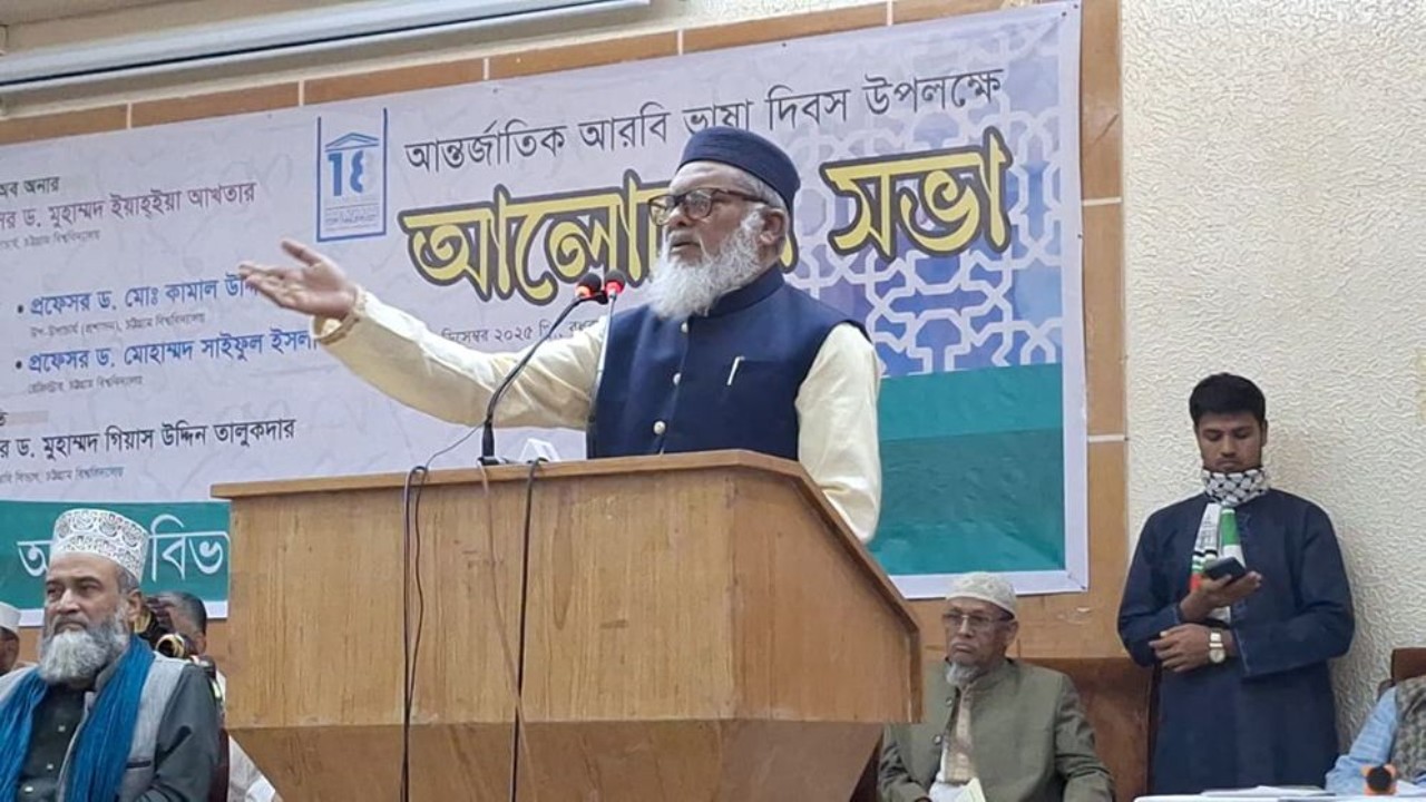 বুধবার (১৭ ডিসেম্বর) দুপুরে চট্টগ্রাম বিশ্ববিদ্যালয়ের ব্যবসা প্রশাসন অনুষদ মিলনায়তনে আন্তর্জাতিক আরবি ভাষা দিবস উপলক্ষে আরবি বিভাগের আয়োজিত আলোচনা সভায় প্রধান অতিথির বক্তব্যে তিনি এ কথা বলেন।
