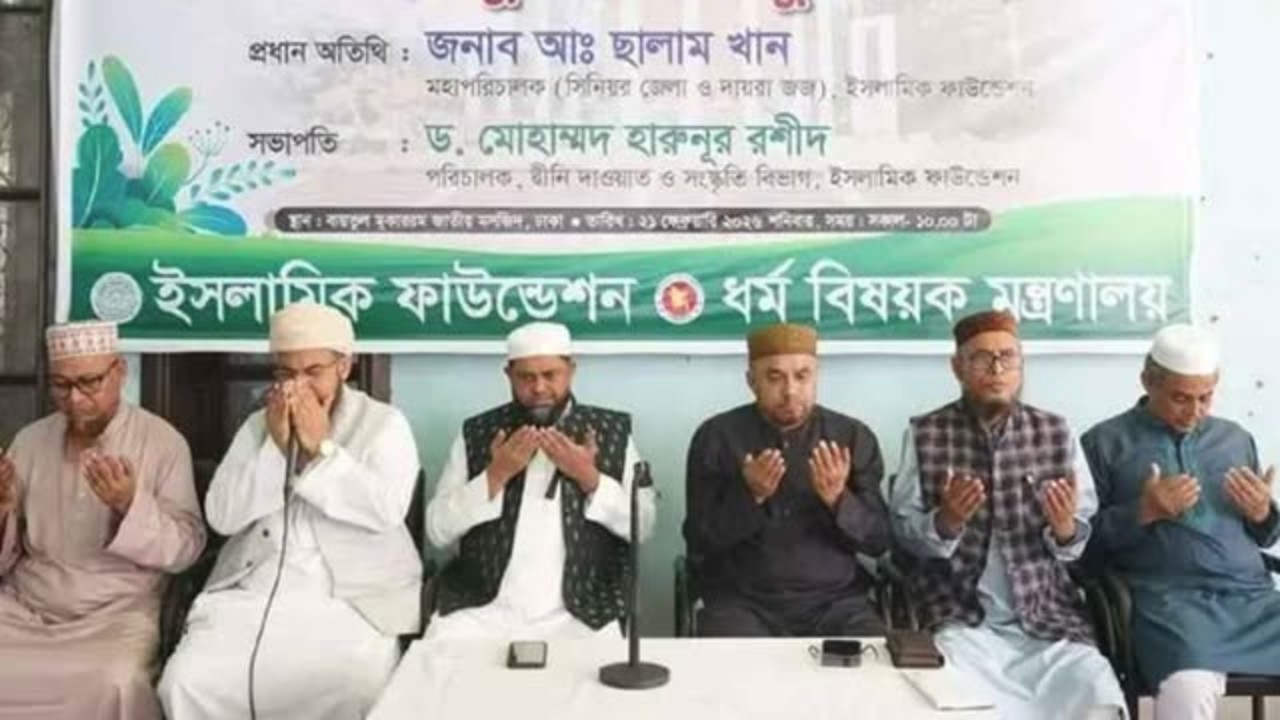 বিষয়টি নিশ্চিত করে ইসলামিক ফাউন্ডেশন বাংলাদেশের জনসংযোগ কর্মকর্তা মুহাম্মদ নিজাম উদ্দিন জানান, মোনাজাতে বায়ান্নর ভাষা আন্দোলনে আত্মদানকারী শহীদদের রূহের মাগফিরাত কামনা করা হয়। একই সঙ্গে দেশের শান্তি, সমৃদ্ধি ও উন্নতির জন্য মহান আল্লাহর কাছে দোয়া করা হয়।