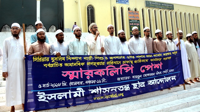 সিরিয়ায় গণহত্যা বন্ধে জাতিসংঘ মহাসচিব বরাবর ছাত্র আন্দোলনের স্বারকলিপি