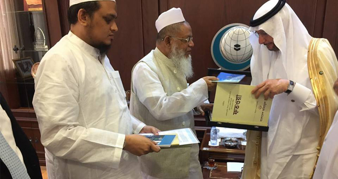 ওআইসি মহাসচিবের হাতে শান্তির ফতোয়া তুলে দিলেন আল্লামা মাসউদ