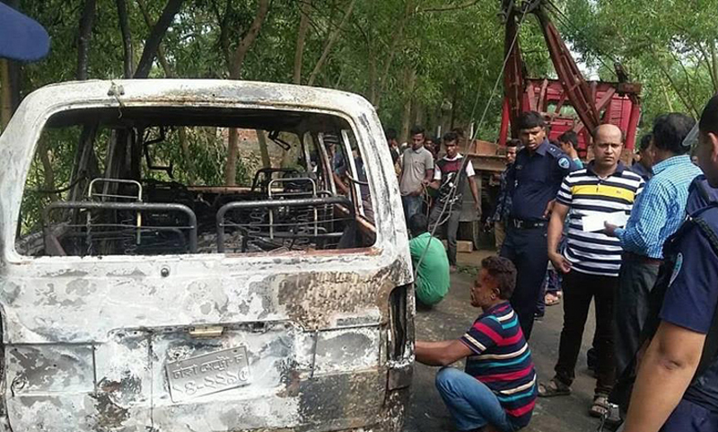 ধাওয়া খেয়ে যুবকের মৃত্যু, পুলিশের গাড়িতে আগুন