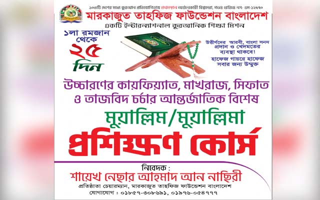 রমজানে মারকাজুত তাহফিজ ফাউন্ডেশন বাংলাদেশের অধীনে ২৫ দিনের মুয়াল্লিম প্রশিক্ষণ