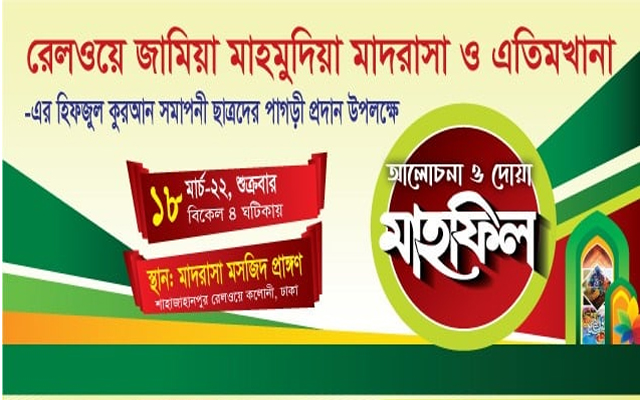শুক্রবার রেলওয়ে জামিয়া মাহমুদিয়া মাদরাসায় সমাপনী ছাত্রদের পাগড়ী প্রদান অনুষ্ঠান