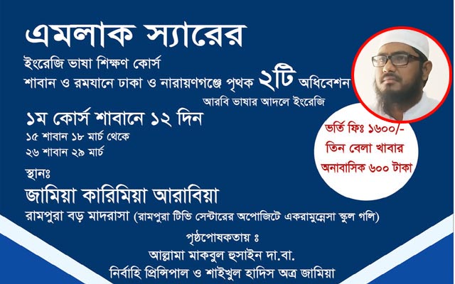 জামিয়া কারিমিয়ায় আগামীকাল থেকে শুরু হচ্ছে এমলাক স্যারের ইংরেজি ভাষা শিক্ষণ কোর্স