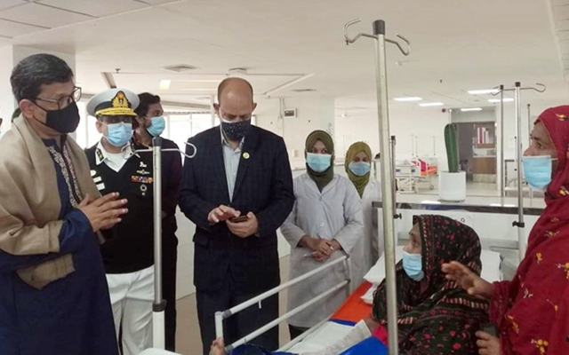 লঞ্চে অগ্নিদগ্ধদের খোঁজ নিলেন নৌপ্রতিমন্ত্রী