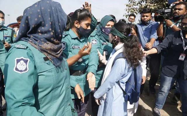 বাধার মুখে শিক্ষার্থীদের মানবন্ধন কর্মসূচি