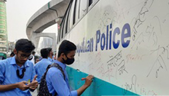 লাইসেন্স না থাকায় পুলিশের বাস আটকে রাখল শিক্ষার্থীরা
