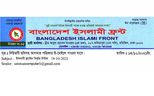 পূজা মন্ডপে কুরআন অবমাননার তীব্র নিন্দা জানিয়েছে বাংলাদেশ ইসলামী ফ্রন্ট
