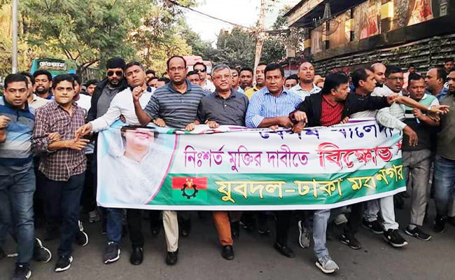 খালেদার মুক্তির দাবিতে রাজধানীতে যুবদলের বিক্ষোভ