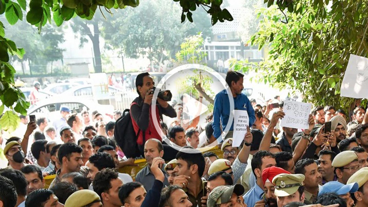 দিল্লিতে কয়েক হাজার পুলিশের নজিরবিহীন বিক্ষোভ (ভিডিও)