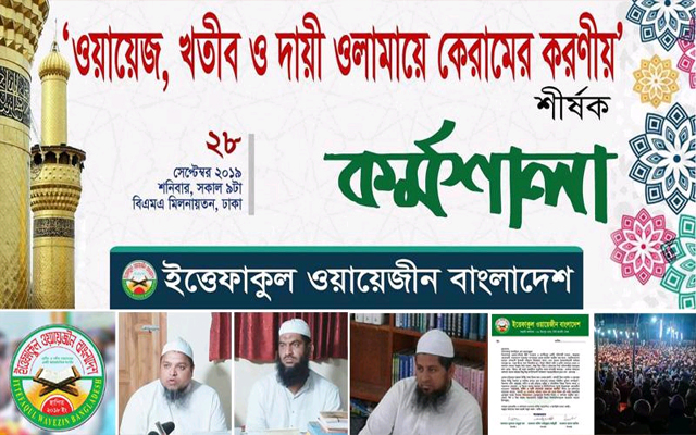 ‘ওয়ায়েজদের করণীয়’ শীর্ষক কর্মশালা করবে ইত্তেফাকুল ওয়ায়েজীন বাংলাদেশ