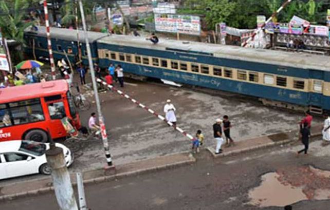 চাষাঢ়ায় লেভেল ক্রসিংয়ে বিকল ট্রেন