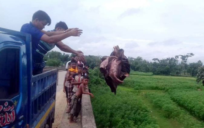 কুমিল্লায় ন্যায্যমূল্য না পেয়ে গোমতী নদীতে পশুর চামড়া