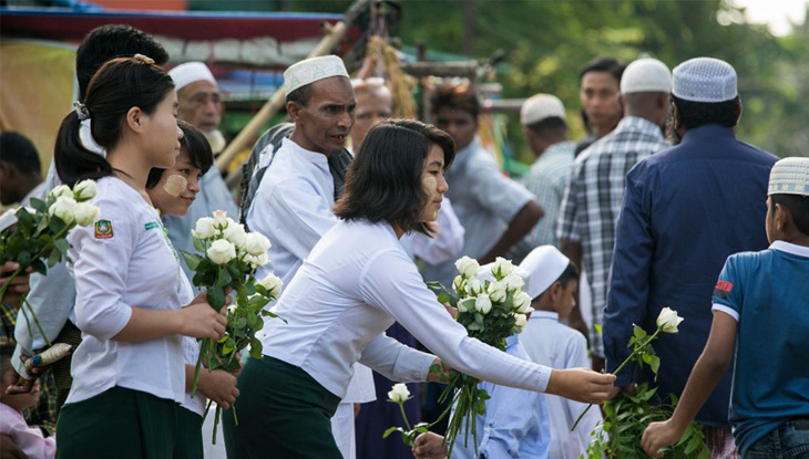 ঈদে মুসলিমদের গোলাপ দিয়ে শুভেচ্ছা জানালো মিয়ানমারের বৌদ্ধরা