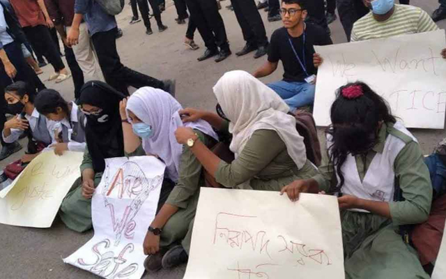 বাসচাপায় শিক্ষার্থী আহতের ঘটনায় উত্তরায় সড়ক অবরোধ