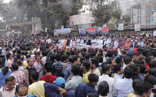প্রেসক্লাবের সামনে বিক্ষোভ সমাবেশ করছে বিএনপি