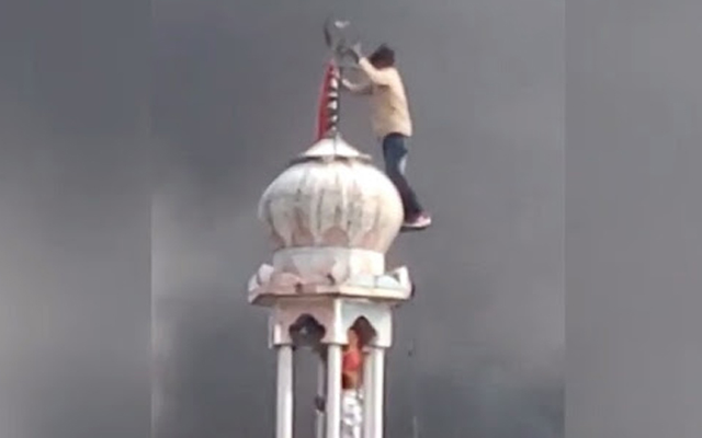 দিল্লির মসজিদে আগুন, মিনারে উঠল হনুমানের পতাকা
