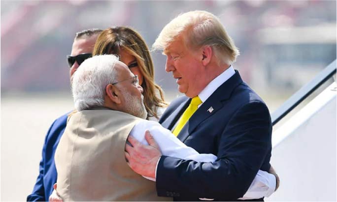 ট্রাম্পকে জড়িয়ে ধরে স্বাগত জানালো নরেন্দ্র মোদি