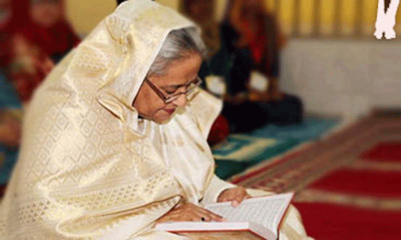 বাবার কবরের পাশে বসে কুরআন তেলাওয়াত করলেন প্রধানমন্ত্রী