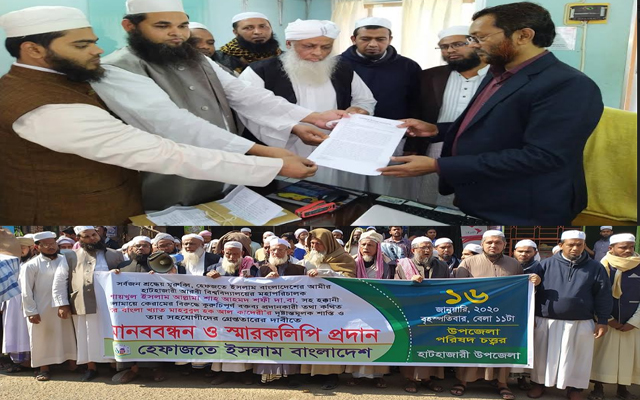 উস্কানীমূলক বক্তব্য প্রদানকারীদের শাস্তির দাবিতে মানববন্ধন ও স্মারকলিপি প্রদান