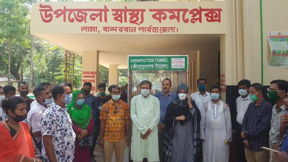 লামা স্বাস্থ্যকমপ্লেক্সে জীবাণুনাশক টানেল স্থাপন