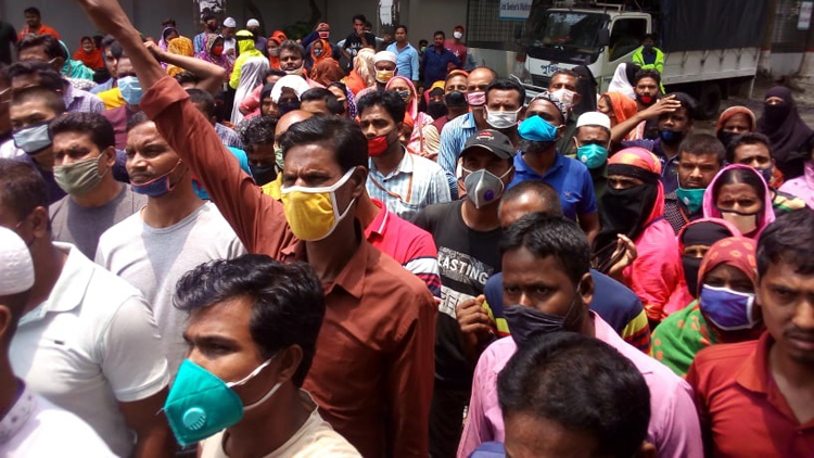 আশুলিয়ায় সড়ক অবরোধ করে পোশাক শ্রমিকদের বিক্ষোভ