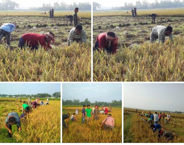 কৃষকের ধান কেটে দিলো বাজিতপুর উপজেলা ছাত্রলীগ