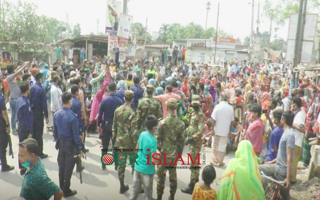 লকডাউন ভেঙে টাঙ্গাইলে খাবারের জন্য বিক্ষোভ