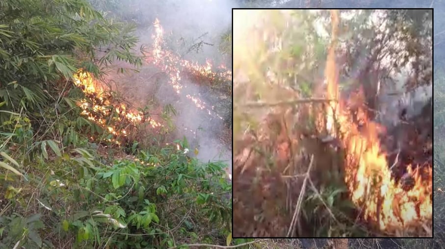 জাতীয় উদ্যান লাওয়াছড়ার কাছের একটি বনে আগুন