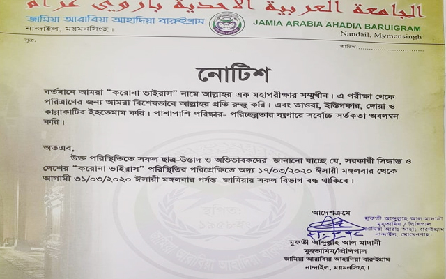 ময়মনসিংহের জামিয়া আরাবিয়া আহাদিয়া বন্ধ ঘোষণা