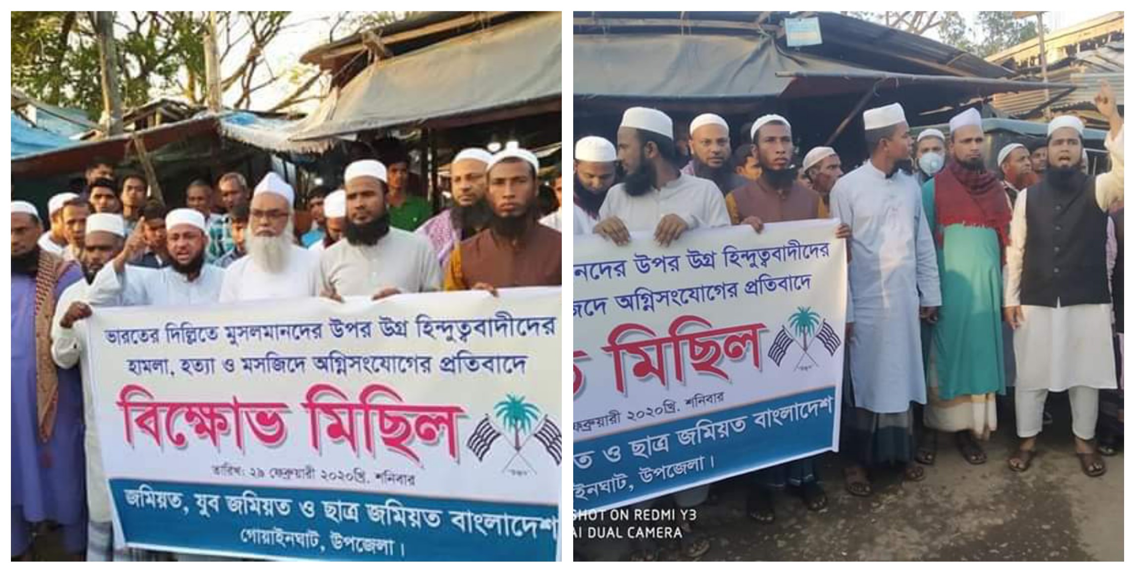 দিল্লিতে মুসলিম হত্যার প্রতিবাদে কমলগঞ্জে খেলাফত মজলিসের বিক্ষোভ
