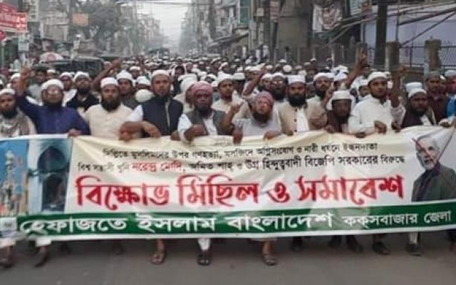মোদির সফর বাতিলের দাবিতে কক্সবাজারে হেফাজতের বিক্ষোভ