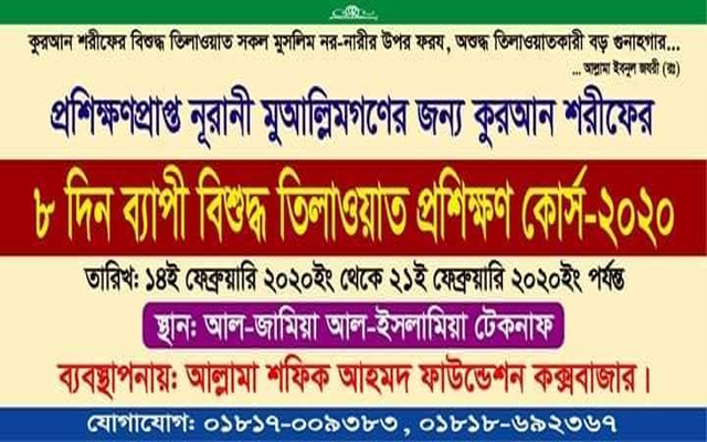 আগামীকাল থেকে বিনামূল্যে বিশুদ্ধ কুরআন তেলাওয়াত প্রশিক্ষণ কোর্স শুরু
