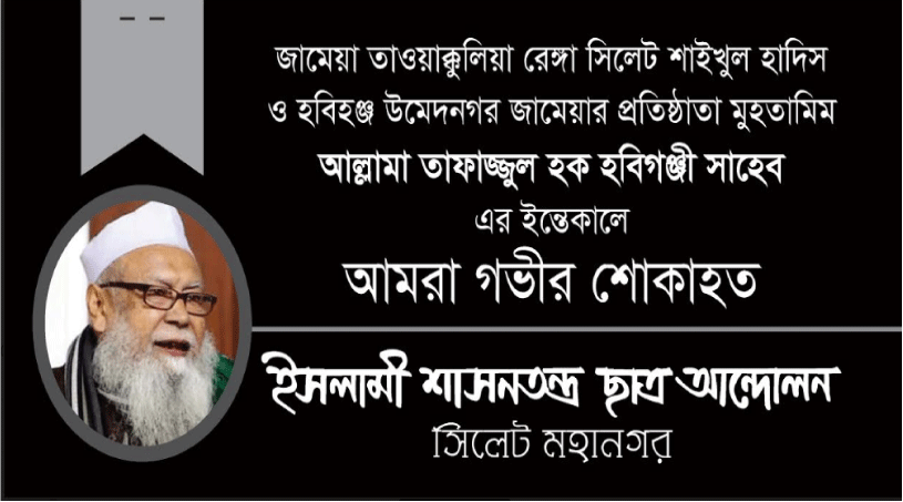 আল্লামা হবিগঞ্জীর ইন্তেকালে সিলেট মহানগর ছাত্র আন্দোলনের শোক