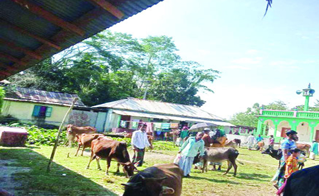 বামনায় মাদরাসার মাঠে গরুর হাট, শিক্ষার্থীদের দুর্ভোগ!