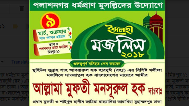 মিরপুর পলাশনগরে ইসলাহী মজলিস ৯ মার্চ