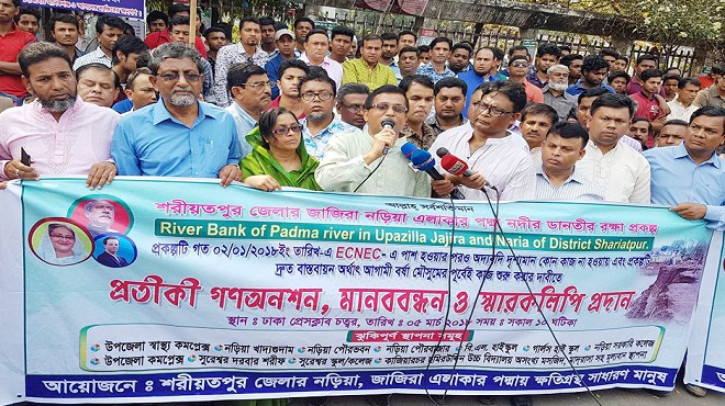 নদী শাসন প্রকল্প বাস্তবায়নের দাবীতে শরীয়তপুর বাসীর মানববন্ধন