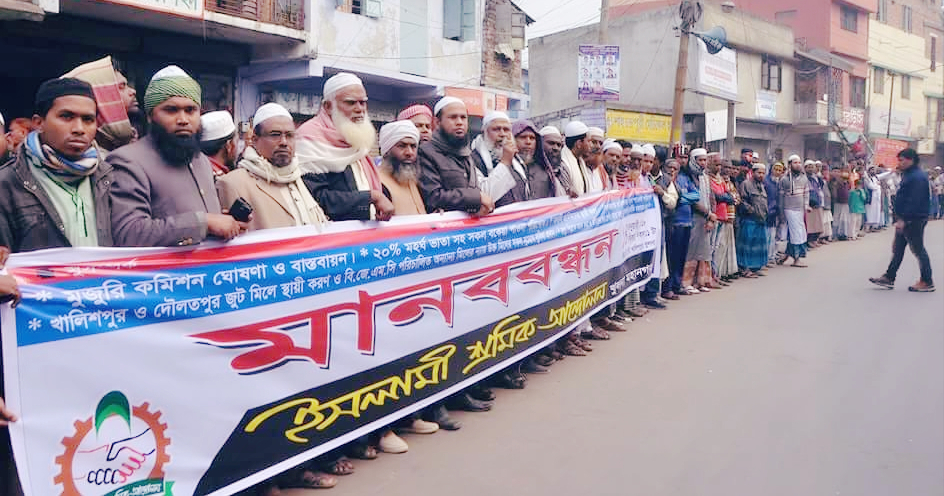 পাট মন্ত্রীর পদত্যাগের দাবিতে খুলনায় ইসলামী শ্রমিক আন্দোলনের মানববন্ধন