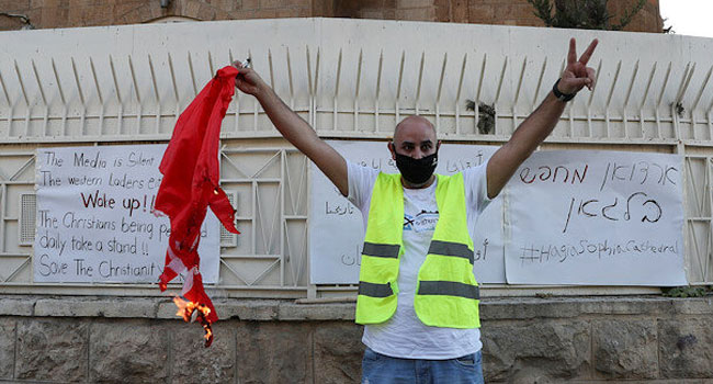 আয়া সোফিয়াকে মসজিদ ঘোষণা করায় ইসরায়েলে তুরস্কের পতাকায় আগুন