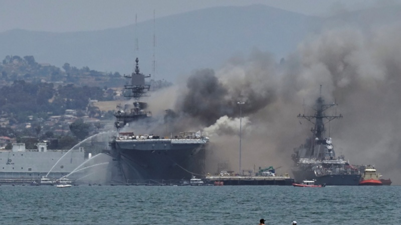 মার্কিন রণতরীতে তৃতীয় দিনের মতো আগুন জ্বলছে; নেভাতে পারছে না ৪০০ কর্মী