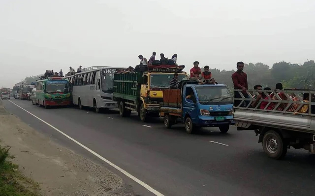 পাটুরিয়া-দৌলতদিয়ায় ফেরি চলাচল বন্ধ, পারাপারের অপেক্ষায় শত শত যানবাহন