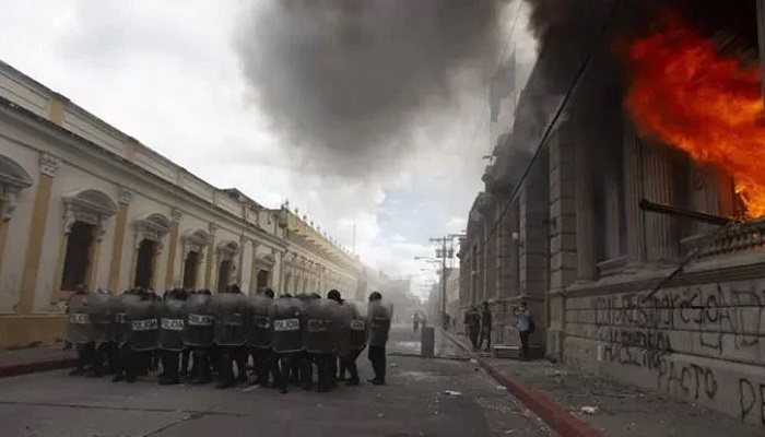 পদত্যাগের দাবিতে গুয়াতেমালার পার্লামেন্ট ভবনে বিক্ষোভকারীদের অগ্নিসংযোগ
