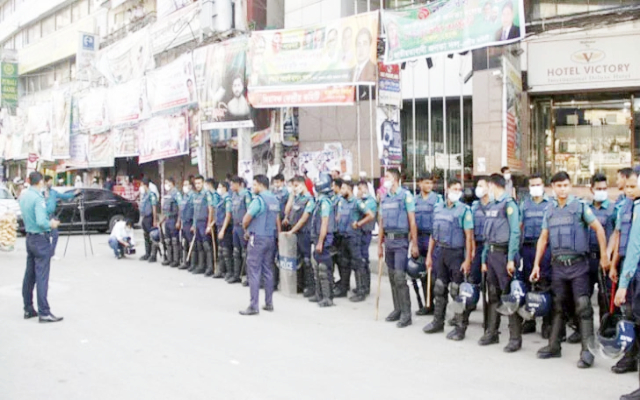 বাসে আগুন: বিএনপির কার্যালয় ঘিরে রেখেছে পুলিশ