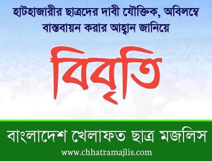 ‘হাটহাজারীর ছাত্রদের দাবী যৌক্তিক, অবিলম্বে বাস্তবায়ন করার আহ্বান'