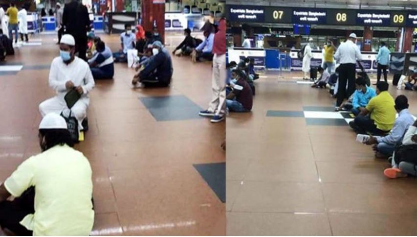 আবুধাবিফেরত যাত্রীদের বিমানবন্দরে বিক্ষোভ