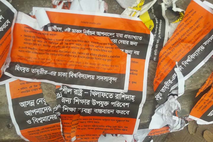 ডাকসু নির্বাচন নিয়ে নিষিদ্ধ সংগঠন হিজবুত তাহরীরের পোস্টার অপসারণ