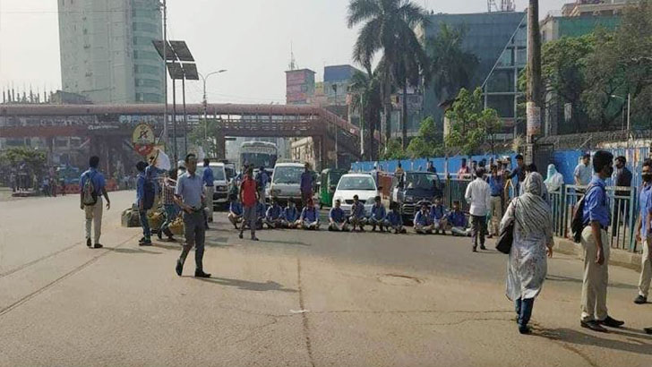 আন্দোলনের দ্বিতীয় দিনে রাস্তা বন্ধ করে অবস্থান নিয়েছে শিক্ষার্থীরা